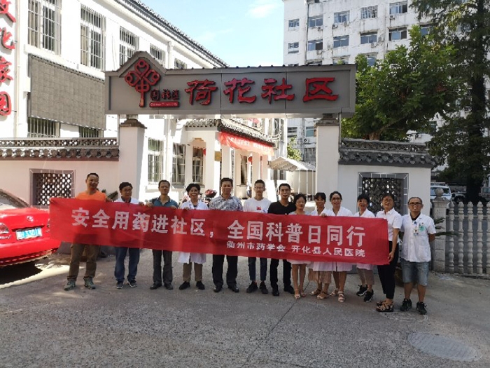 ??? 為了以“安全用藥”科普宣傳為己任,緊扣“創(chuàng)新引領(lǐng)時(shí)代,智慧點(diǎn)亮生活”主題,9月19日,“安全用藥進(jìn)社區(qū),全國科普日同行”活動(dòng)在開化荷花社區(qū)舉行。本次活動(dòng)由衢州市藥學(xué)會(huì)主辦、我院、開化縣人民醫(yī)院承辦、開化縣荷花社區(qū)、開化縣藥學(xué)會(huì)協(xié)辦。