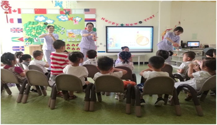 ? ? 為了讓小朋友們更好地認識和學習手衛(wèi)生知識,輸液室護士趙曉華根據(jù)小小班小朋友的特點,通過生動形象的卡通圖片讓他們了解手衛(wèi)生知識,并且通過做示范、學洗手操等和小朋友們開展互動,讓小朋友知曉手衛(wèi)生的重要性。