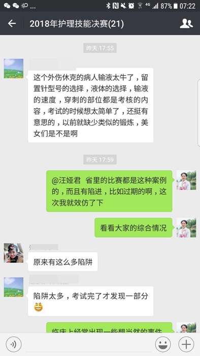 ??? 此次競賽有別于傳統(tǒng)的護理操作及競賽中“以技術(shù)為中心”的觀念,充分體現(xiàn)了“以病人為中心”的護理理念和臨床思維。重點考查參賽選手的知識應(yīng)用能力、臨床思維能力、分析問題和解決問題的能力、臨床實踐能力以及應(yīng)急處置能力、溝通及人文關(guān)懷能力等。以案例情景模擬為基礎(chǔ),選手根據(jù)案例,在站點內(nèi)進行病情評估判斷、臨床決策、物品準(zhǔn)備、完成護理技能操作,并將人文關(guān)懷融入到護理操作中。
