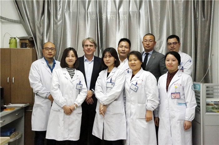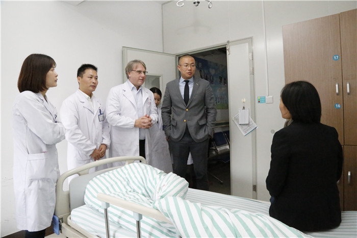 ??? Kohne教授主要擅長(zhǎng)胃腸腫瘤及血液腫瘤治療,這次來(lái)中國(guó)主要是ESMO胃腸腫瘤巡講。當(dāng)日,Konhe教授在我院腫瘤內(nèi)科病房進(jìn)行查房,期間與科室醫(yī)務(wù)人員親切交談,對(duì)于腫瘤內(nèi)科的診療技術(shù)表示了肯定。