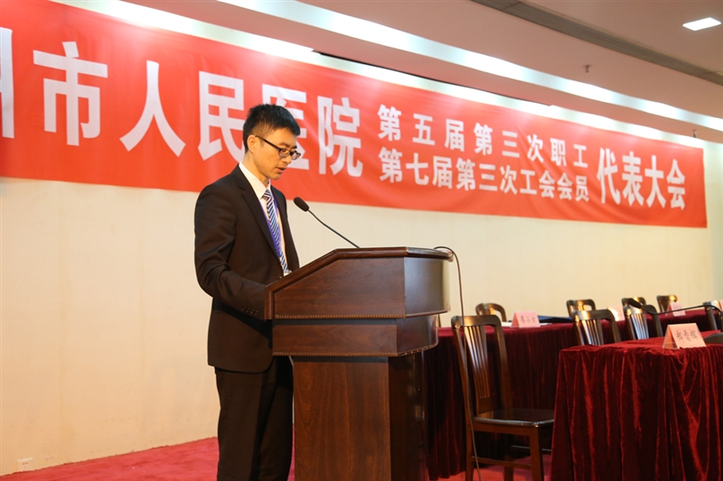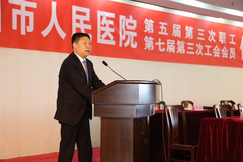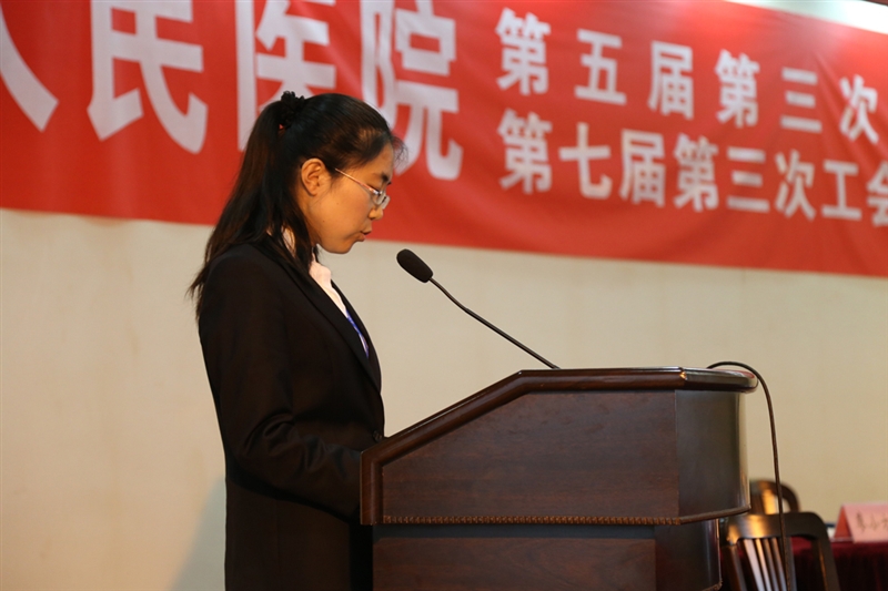 ??? 會(huì)議中,院長陳震宏做《醫(yī)院工作報(bào)告》,院黨委書記徐天才作《醫(yī)院“十三.五”發(fā)展規(guī)劃》、副院長王巨宏作《醫(yī)院財(cái)務(wù)工作報(bào)告》、工會(huì)主席周見作《醫(yī)院工會(huì)工作報(bào)告》、經(jīng)審委主任徐琴作《醫(yī)院工會(huì)經(jīng)費(fèi)審查工作報(bào)告》、人事處長汪英俊作《醫(yī)院晉升高級(jí)職稱推薦辦法(修改稿)》的說明、財(cái)務(wù)處長沈紅作《醫(yī)院績效分配方案》的說明、工會(huì)委員胡澤富作《醫(yī)院提案工作報(bào)告》。