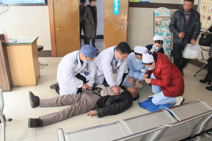??? 心血管內(nèi)科鄭家勝醫(yī)生及護(hù)士聞訊趕來,洪清慧立即打電話急診科急救,此時,一場與死神的賽跑拉開序幕。