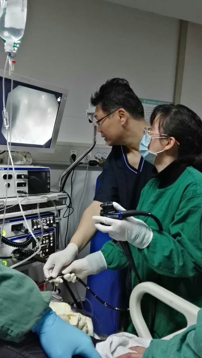 ??? 隨后,傅教授在消化內(nèi)鏡中心進(jìn)行了現(xiàn)場(chǎng)操作演示,深入細(xì)致地分析了內(nèi)鏡下所見(jiàn)的正常和病變結(jié)構(gòu)特征,并親切地手把手指導(dǎo)。