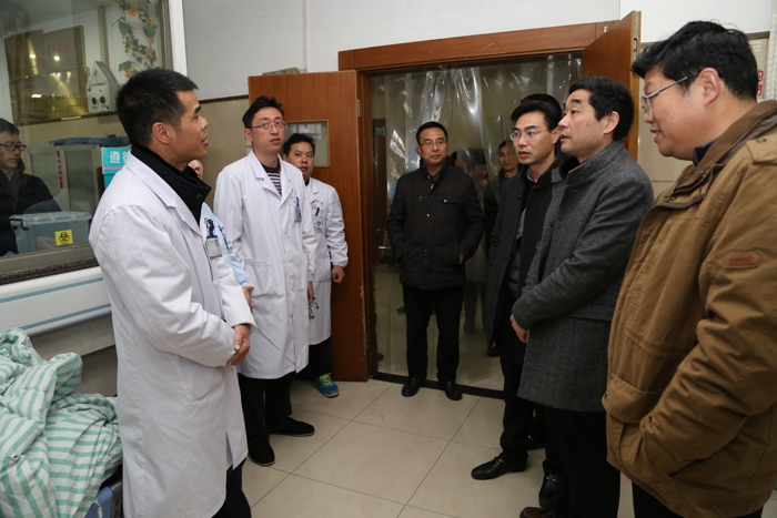??? 陳根成主任一行來到急診科、心血管內(nèi)科等臨床科室親切問候醫(yī)護(hù)人員,詳細(xì)了解春節(jié)期間的工作情況,并對春節(jié)期間仍堅守在工作崗位上的醫(yī)務(wù)人員表示衷心的感謝。