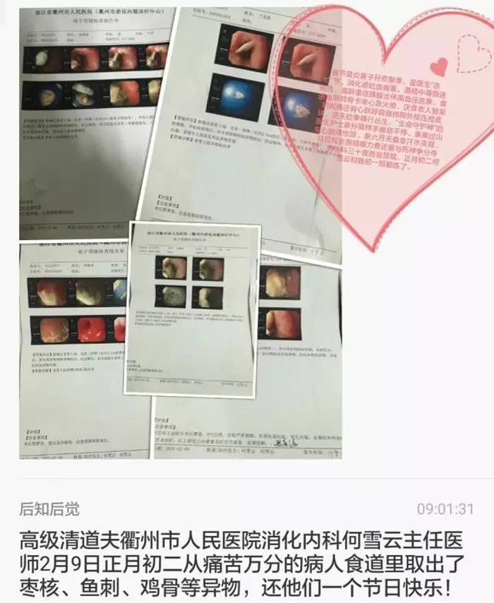 ??? 對(duì)于消化內(nèi)科醫(yī)生來(lái)說(shuō)春節(jié)就是“農(nóng)忙季”,酒精中毒、消化道出血、重癥胰腺炎、食道異物等病危病重患者接踵而至;消化內(nèi)科、內(nèi)鏡中心的醫(yī)護(hù)人員共為9位患者在胃鏡下取出了棗核、雞骨頭、魚刺等異物,還他們一個(gè)快樂(lè)的節(jié)日。