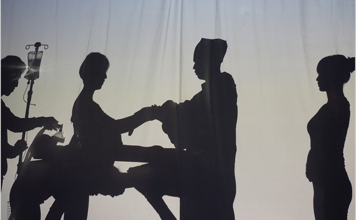 ??? 手術(shù)室?guī)?lái)的影子舞《衢醫(yī)映像》,取材于真實(shí)的手術(shù)室醫(yī)務(wù)人員的工作生活場(chǎng)景,他們用一份熱愛(ài)、一縷真情、一份執(zhí)著,換來(lái)了衢城百姓的安康。