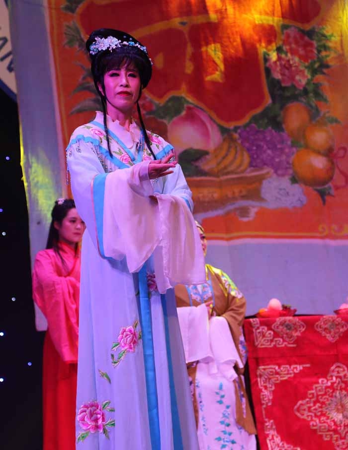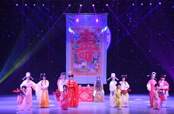 越劇俱樂(lè)部雖然成立不久,但是他們獻(xiàn)上的《五女拜壽》專業(yè)性極強(qiáng),演員在舞臺(tái)上的一顰一笑,一招一式,韻味十足,讓廣大越迷們過(guò)足了癮。