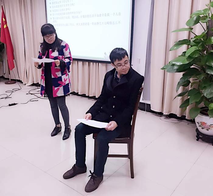??? 俱樂(lè)部學(xué)員自導(dǎo)自演家庭情景劇,4位“演員”分別表演家庭中“嘮叨-沉默-情緒爆發(fā)”的故事,演員們繪聲繪色的表演贏得了一片掌聲,學(xué)員們很快掌握了如何避免一般性安慰、如何有效發(fā)泄情緒等技能。