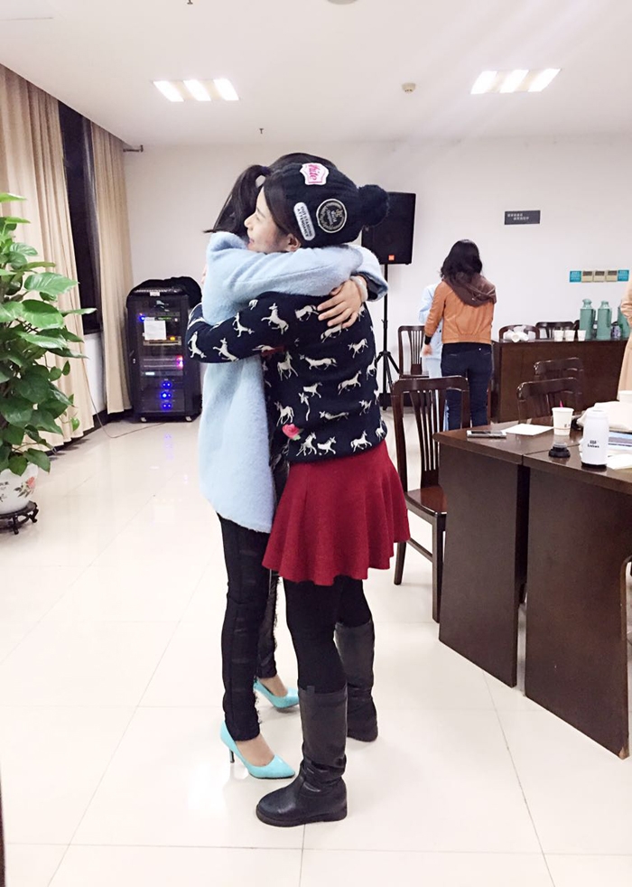 ??? 為了幫助學(xué)員更好地理解非言語(yǔ)溝通技巧,張老師和俱樂(lè)部學(xué)員將座位重新調(diào)整,以小組的形式互動(dòng)體驗(yàn)沉默的張力和人際距離對(duì)情緒的影響。學(xué)員們按照張老師的指示,從距離、觸摸、眼神交流、朗讀詩(shī)咒等內(nèi)容演繹靈魂溝通,在兩人互動(dòng)練習(xí)“眼神交流”環(huán)節(jié),平時(shí)熟悉的兩個(gè)人在詩(shī)歌朗誦聲中對(duì)視,從剛開(kāi)始的嬉笑、羞澀到后面淚水在眼眶打轉(zhuǎn),并情不自禁地上前擁抱對(duì)方,場(chǎng)面溫馨,讓人感動(dòng)。