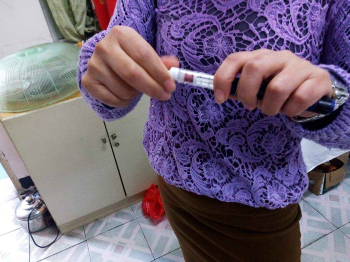 內分泌代謝病科??谱o士在檢查胰島素筆