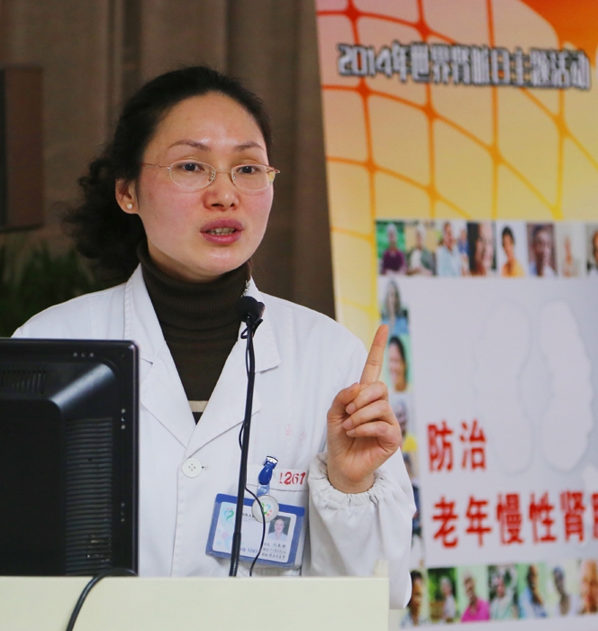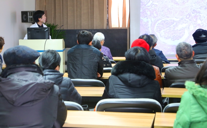 ??? 腎內(nèi)科吳金土主任、劉春雅副主任為病友們講解了腎臟病的飲食、終末期腎病的透析選擇等相關(guān)常識,并當(dāng)場解答病友提出的問題,現(xiàn)場還有專職護(hù)士為病友量血壓、測血糖。此次腎友會活動(dòng),為醫(yī)患及患患之間搭建了一個(gè)溝通交流的平臺,通過開展知識講座等活動(dòng),進(jìn)一步提高了患者護(hù)腎的意識及腎病的健康知識。