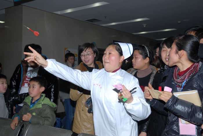 釣魚、套圈、踢毽子、飛鏢、瞎子過障礙等10項(xiàng)趣味性的游戲吸引了近600人參加。游園活動(dòng)使醫(yī)務(wù)人員在緊張的工作之余放松了心情、增進(jìn)了交流。在這里,獲獎(jiǎng)與否已經(jīng)并不重要,參與和笑聲才是最大的收獲。