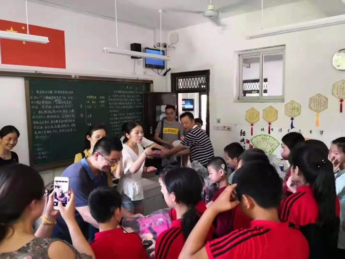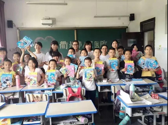 2018年5月18日,支部黨員醫(yī)護工作者為孩子們送上書籍和學(xué)習(xí)用品。