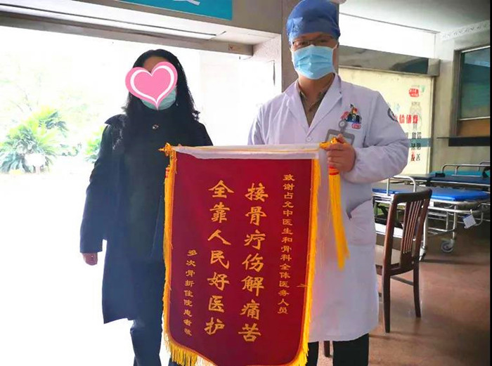 3月17日下午,一陣清脆的電話鈴聲在骨科七病區(qū)護士站響起,電話那頭的顧女士,要給骨科占允中醫(yī)師送錦旗,表達對骨科醫(yī)務(wù)人員的感謝。