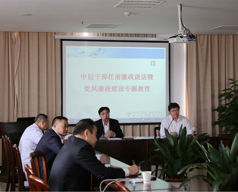 ??? 陳震宏院長作任前廉政談話,他指出,任前廉政談話既是干部任用管理的一項重要程序,也是加強干部廉政教育、筑牢思想道德防線的重要舉措。中層干部要進一步明確自己在黨風廉政建設中承擔的責任,注重對黨員干部廉潔自律相關法律法規(guī)知識的學習,正確對待醫(yī)院所賦予的權力,做到清醒就任、清正履職、廉潔從政。