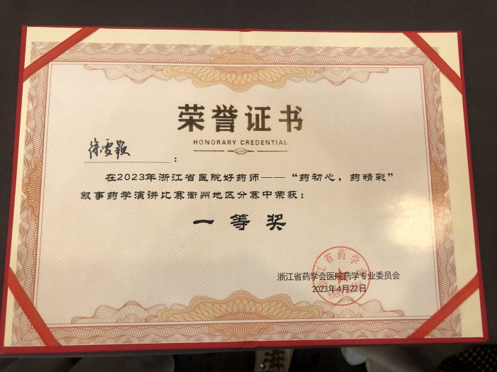 4月22日,2023年浙江省醫(yī)院敘事藥學演講大賽衢州地區(qū)分賽舉行,來自全市的11位選手圍繞“藥初心,藥精彩”主題展現(xiàn)專業(yè)風采。我院青年藥師徐雯穎以《讓愛傳遞,“藥”有擔當》為題作主題演講,獲得一等獎。她將代表衢州賽區(qū)參加省級比拼。